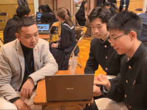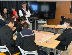 放課後には1年生の希望者との交流会を実施しました。生徒たちは、英語や翻訳サイトを利用して積極的に話し、訪問団と有意義な国際交流を深めました。