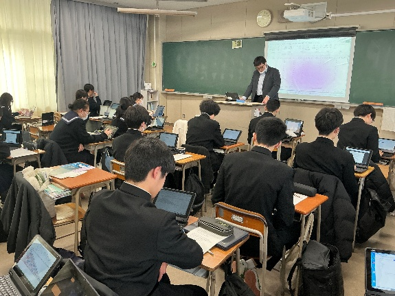 1月28日(水)6,7限「総合的な探究の時間」に、探究科学科1年生が人文社会学科・理数科学科に分かれて実習・演習を行いました。